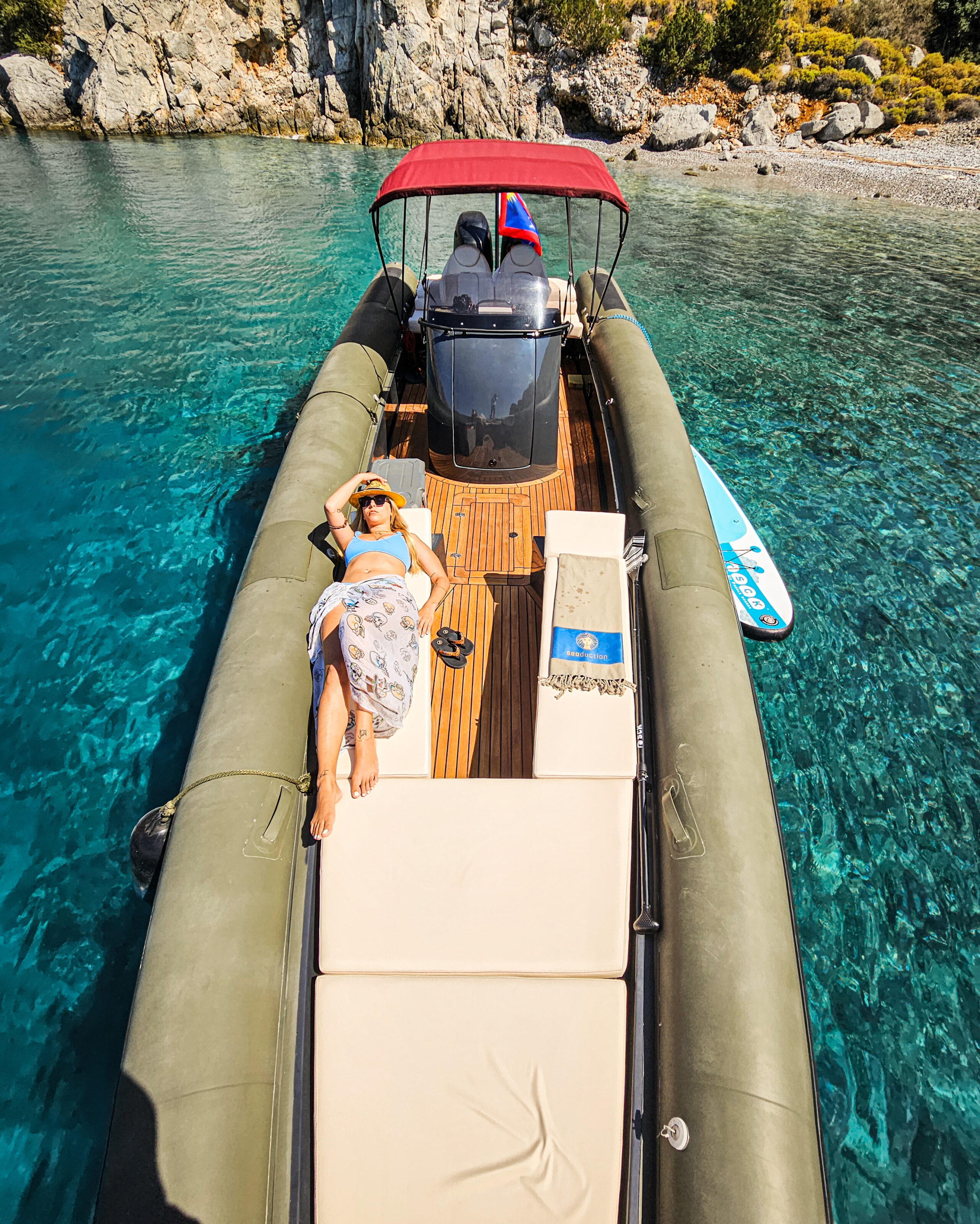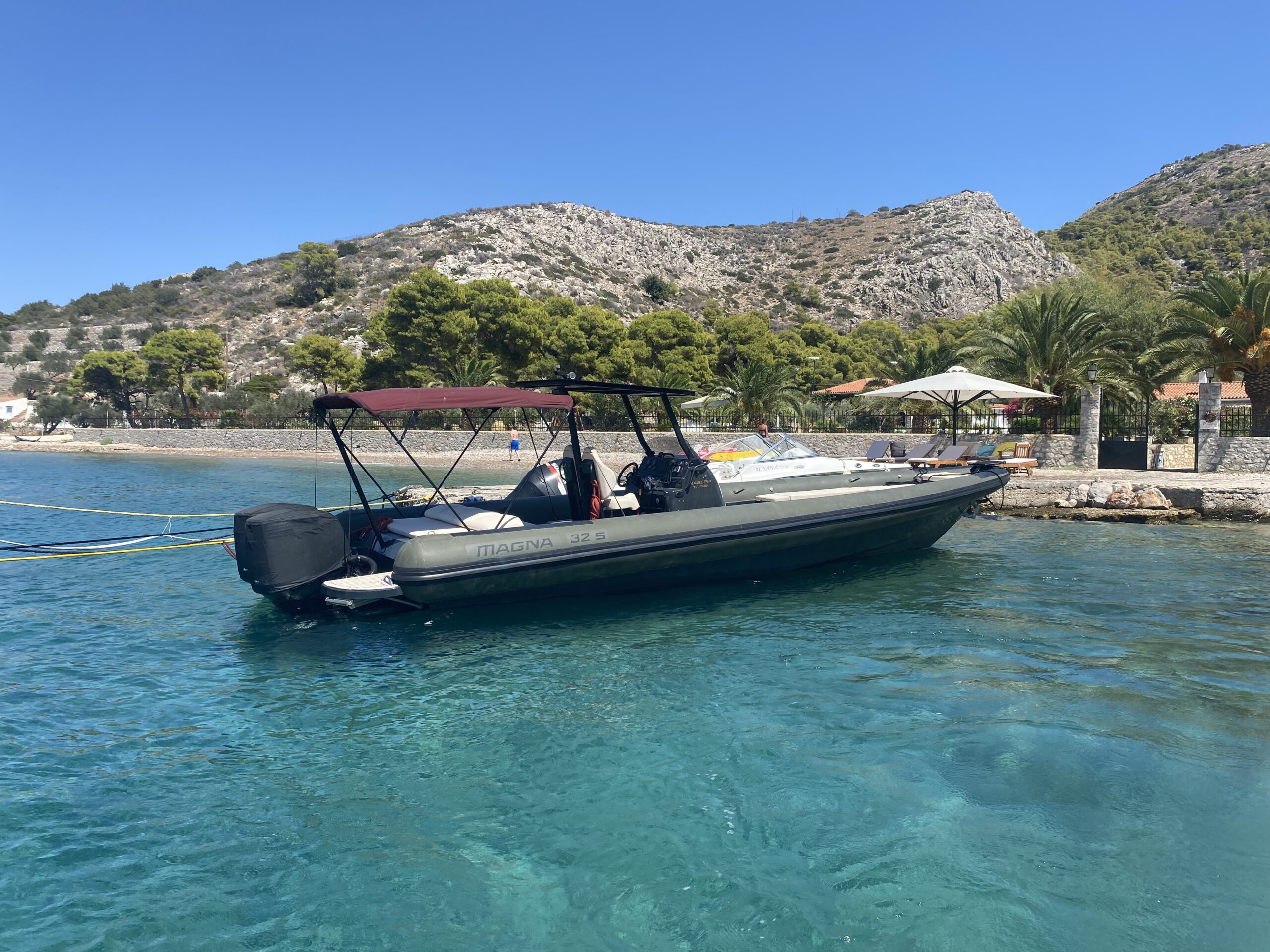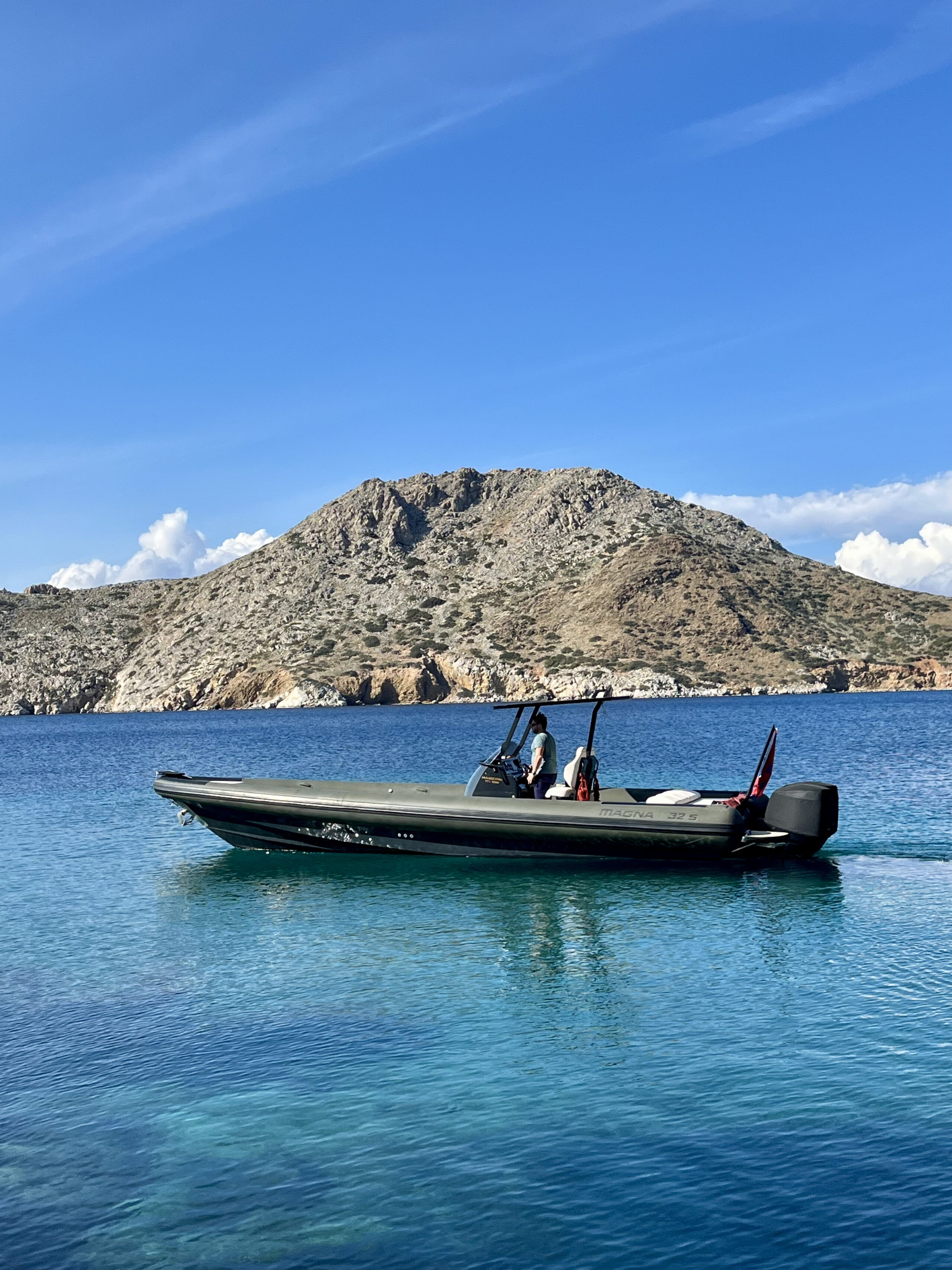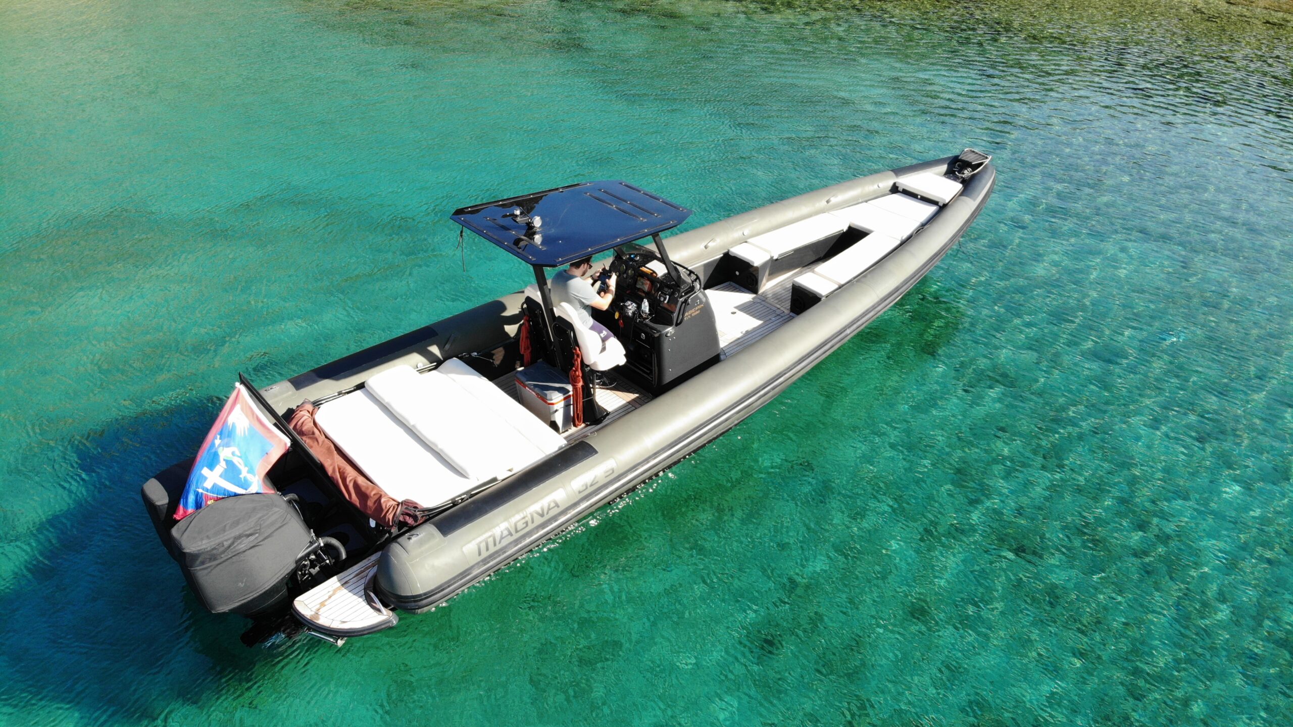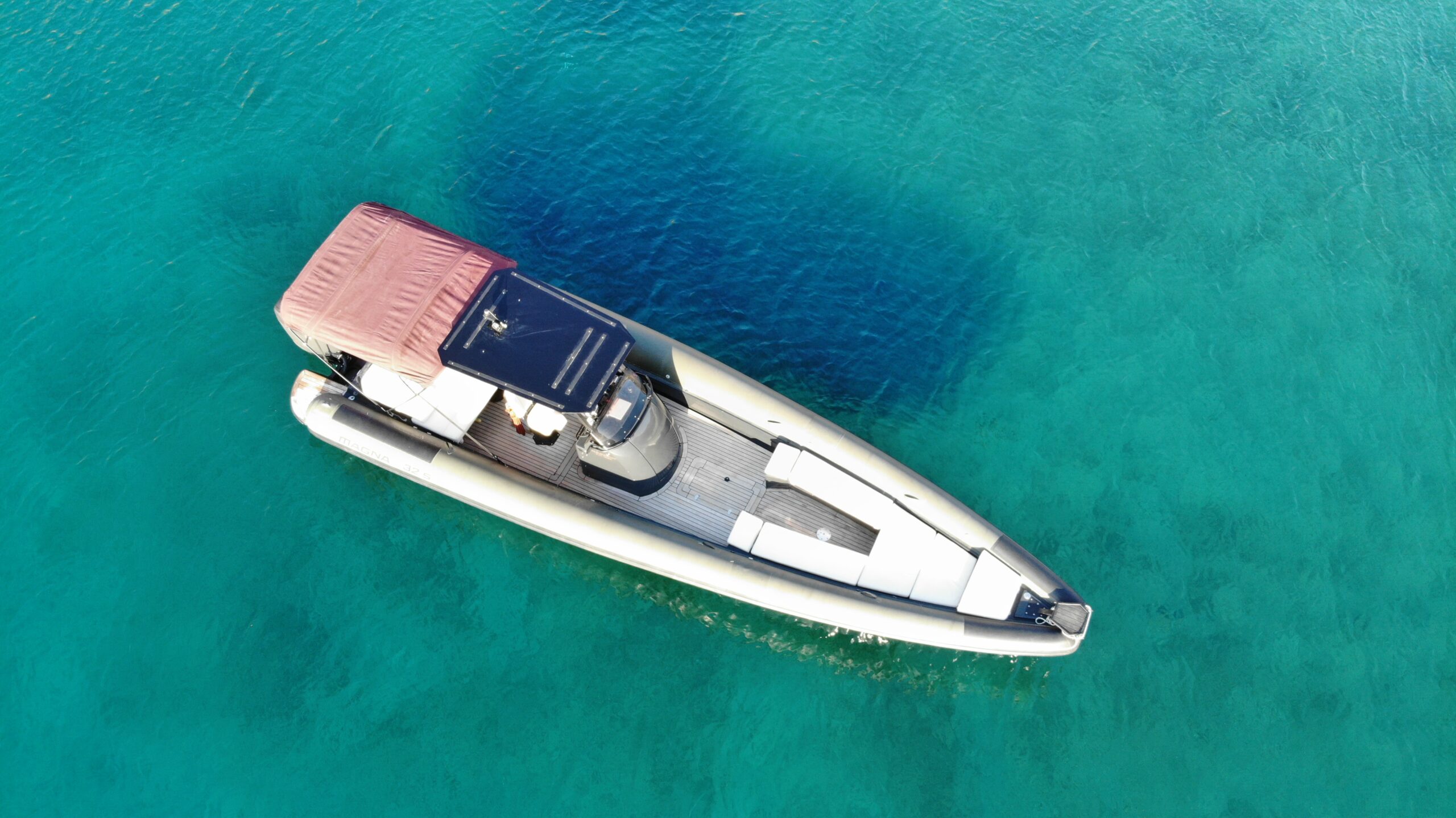 Deriving from a legendary military hull that was redesigned with an aim in comfort, seaworthiness and safety, the Magna 32 S is set up to offer a unique experience to anyone who boards it. With a length of 10.5 meters and a bow deadrise of 66 degrees, it can take you anywhere even in the most extreme conditions, whilst offering a spacious deck for basking in the Greek sun. Additionally, the incredible 10 speaker Audio system that ‘Maverick’ carries, will ensure that you have an amazing time playing your favourite tunes, whether you are into partying or relaxing mood.